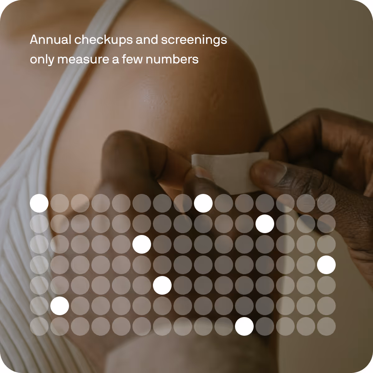 Annual checkups and biometric screenings measure a few numbers once a year — often too late, and with no follow-up.