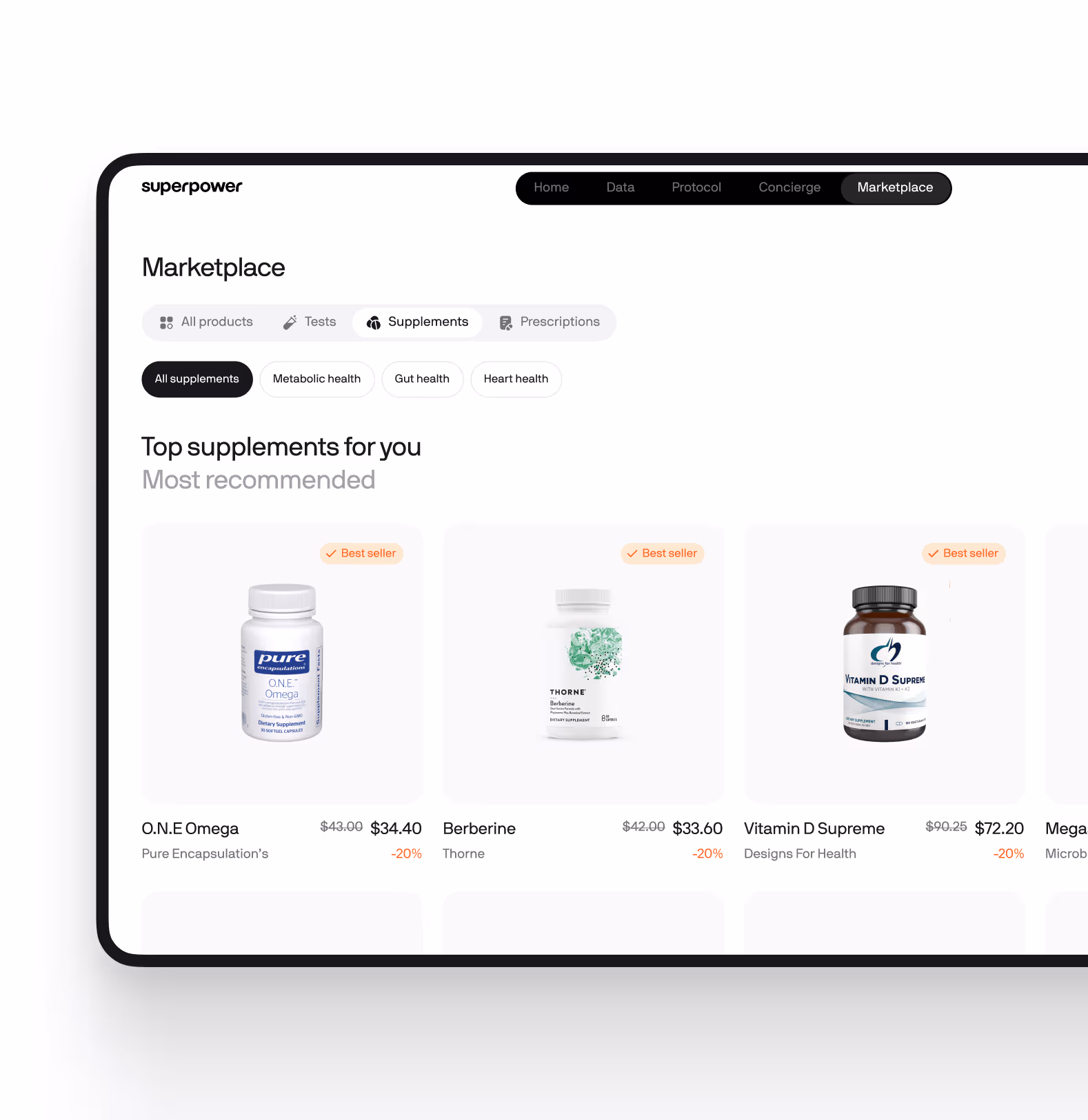 Superpower specializes in prevention-based testing and treatments and is not intended for emergency or immediate health issues.